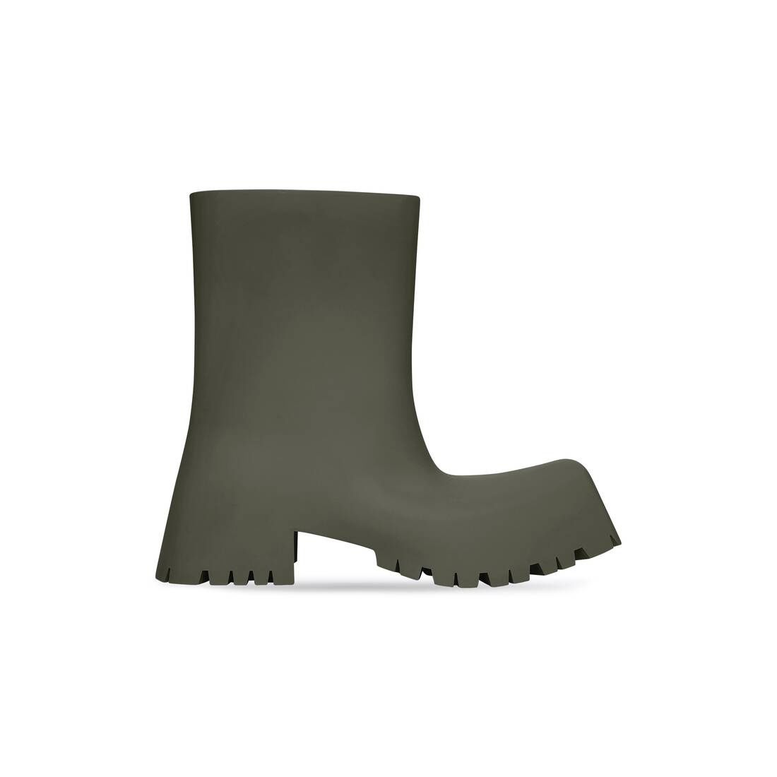 Trooper Rubber Boot in dark green rubber PRODUCT DETAILS • Rubber • Boot • Chunky design • Square toe shape • Thick toothed outsole • Made in Italy • Wipe with a soft cloth Material: 100% TPU