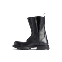 Truck Lace-Up Boot in black soft bullskin PRODUCT DETAILS • Soft bullskin • Boot • Extra round toe • 15mm arch • Can be worn with or without laces • Visible tone-on-tone top-stitching • Inner and outer zipped closure with gusset • Balenciaga and 10 AV George V Paris logo debossed on the upper • Balenciaga logo debossed on the back of the heel • 9 eyelets lace-up vamp • 1 pair of laces included • Used effect on the outsole • Loop at back • Made in Italy Upper: bullskin - Sole: TPU, rubber - Insole: calfskin