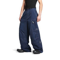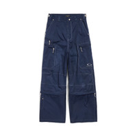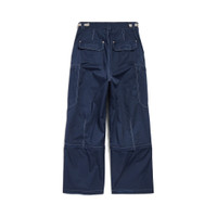 Utility Work Pants in navy mixed cotton twill PRODUCT DETAILS • Mixed cotton twill • Covered zip fly • 5 belt loops • Contrasting tabs and zipper pulls • 2 slash pockets at front • 2 small slash pocket at front • 2 zipped cargo pockets • 2 micro utility pockets at ankles • 2 patch pockets at back • 1 below-th-knee the knee zip to remove pants bottom • Loop Sports Icon embroidey on left side pocket • Made in Italy Main material: 65% polyester, 35% cotton