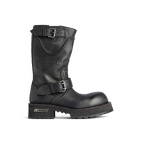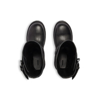 Venom Boot in black calfskin PRODUCT DETAILS • Calfskin • Boot • Extra round toe • 20 mm arch • Worn-out effect • Adjustable straps with belt buckles • Balenciaga and 10 AV George V 75008 Paris logo debossed on the upper • Plate with Balenciaga logo engraved on exterior outsole • Thick toothed rubber outsole • Made in Italy Upper: calfskin - Sole: micro, TPU, calfskin, zamac - Insole: calfskin