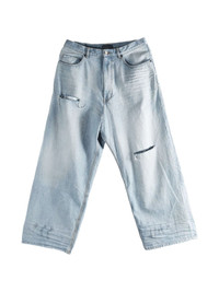 belt-loop distressed jeans Highlights - Blue - Distressed effect - Wide leg - Front pockets - Back pockets Imported Composition Cotton 100% Washing instructions Read Manufacturer Guidelines