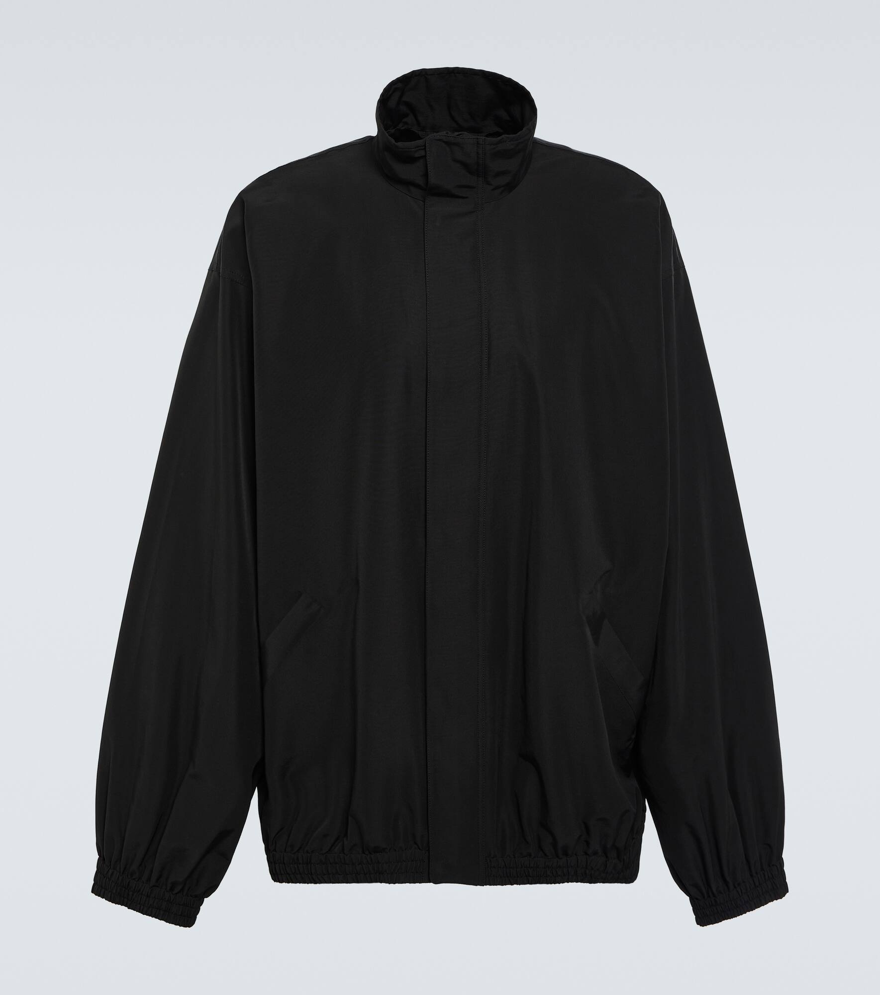 This track jacket from Balenciaga is equal parts minimal and functional. Made from technical faille fabric to a relaxed, oversized silhouette, it features a stand-up collar alongside elasticated trims. Product Details - Lining: fully lined, 100% cupro - Made in Italy - Material: 60% cotton, 40% polyamide - Designer color name: Black - Care instructions: dry clean - Closure: zipped front - Pockets: zipped pockets - Item number: P00792467 Size & Fit - Fits large to size - we recommend trying one size smaller - Designed for an extremely oversized fit - Elasticated hem - Mid-weight material - Falls below the hip - The model in the picture is 185cm-6'1" and wearing a size S