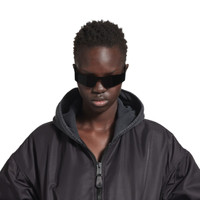Mono Rectangle Sunglasses in black nylon, black nylon injected temples with black lenses PRODUCT DETAILS • Temple length : 4,9 inch • Bridge width : 0,04 inch • Full lens narrow rectangle mask • Standard fit • Extra wrapping style in thick lens • Signature Balenciaga logo laser engraved in low relief and enameled on left temple • Adjustable nosepads with BB printed logo increasing fitting comfort • Lens Category 3 • 100% UVA/UVB protection • Made in Japan • Wipe with a soft cloth • BB0041S 001 Material: 100% nylon