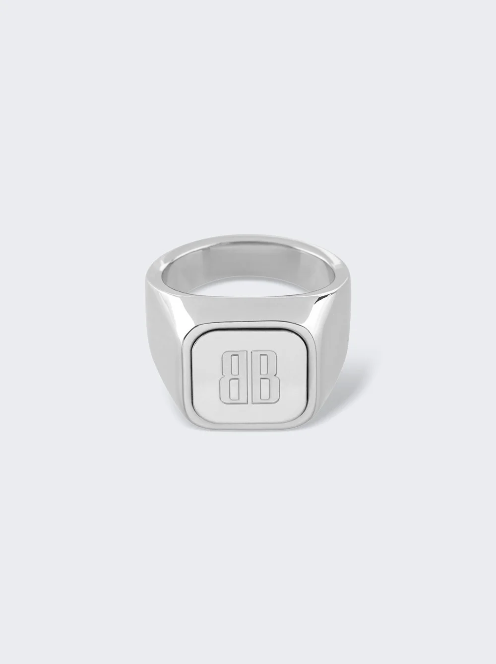 Details - Signet ring - Nano BB logo - Care: To keep the luster of your piece avoid contact with perfumes or lotions. Remove before showering, swimming, or exercise. After each use wipe your piece with a jewelry cloth or cotton ball. Vendor Color Code: Brand Style: 848456 TZ77S Designer/Brand: BALENCIAGA