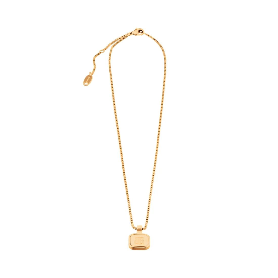 Nano Square Long Necklace in gold recycled brass and brass PRODUCT DETAILS • Dimensions: L24,4 x H12,8 x W0,2 inch • Recycled brass and brass • Long necklace • Nano BB logo engraved • Adjustable chain • Clasp closure • Made in Italy • This item is nickel-free, lead-free, and hypoallergenic Material: brass