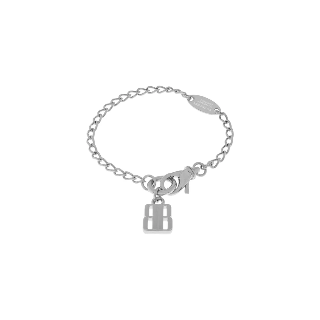 Nano Thin Bracelet in silver brass and zamak PRODUCT DETAILS • Dimensions: S: L6,61 x H1,19 x W0,48 inch • Dimensions: M: L7,08 x H1,19 x W0,48 inch • Dimensions: L: L7,68 x H1,19 x W0,48 inch • Brass and zamak • Bracelet • Nano BB pendant • Balenciaga and 10 AV George V 75008 Paris logo engraved on the front of the plate • Clasp closure • Made in Italy • This item is nickel-free, lead-free, and hypoallergenic Material: brass, zamak