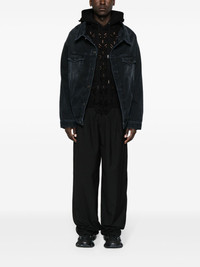 off-shoulder denim jacket Highlights - Midnight blue - Cotton - Denim - Distressed finish - Off-shoulder - Spread collar - Front button fastening - Drop shoulder - Long sleeves - Buttoned cuffs - Two button-fastening chest pockets - Two side slit pockets - Unlined - Adjustable side straps - Straight hem - We've partnered with good on you â an independent agency that rates how brands perform in relation to their impact on the planet, people and animals, with a multi-criteria rating simplified to a five points scale. in order to be awarded our conscious label, larger brands need to score a minimum of four out of five ('good'), while smaller brands must score at least three out of five ('it's a start'). - This item comes from a brand rated four out of five ('good') by good on you at the time it was added on farfetch. please note, this is a brand-level rating and does not guarantee that this product is made with conscious materials. - Learn more about what makes a product conscious on our conscious criteria page Made in Italy Composition Lining: Polyester 65%, Cotton 35% Outer: Cotton 100% SIZE & FIT Model measurements Height 5 ft 9 in(1.76 m) Bust/Chest 32.28 in(82 cm) Hips 34.64 in(88 cm) Waist 24.4 in(62 cm)