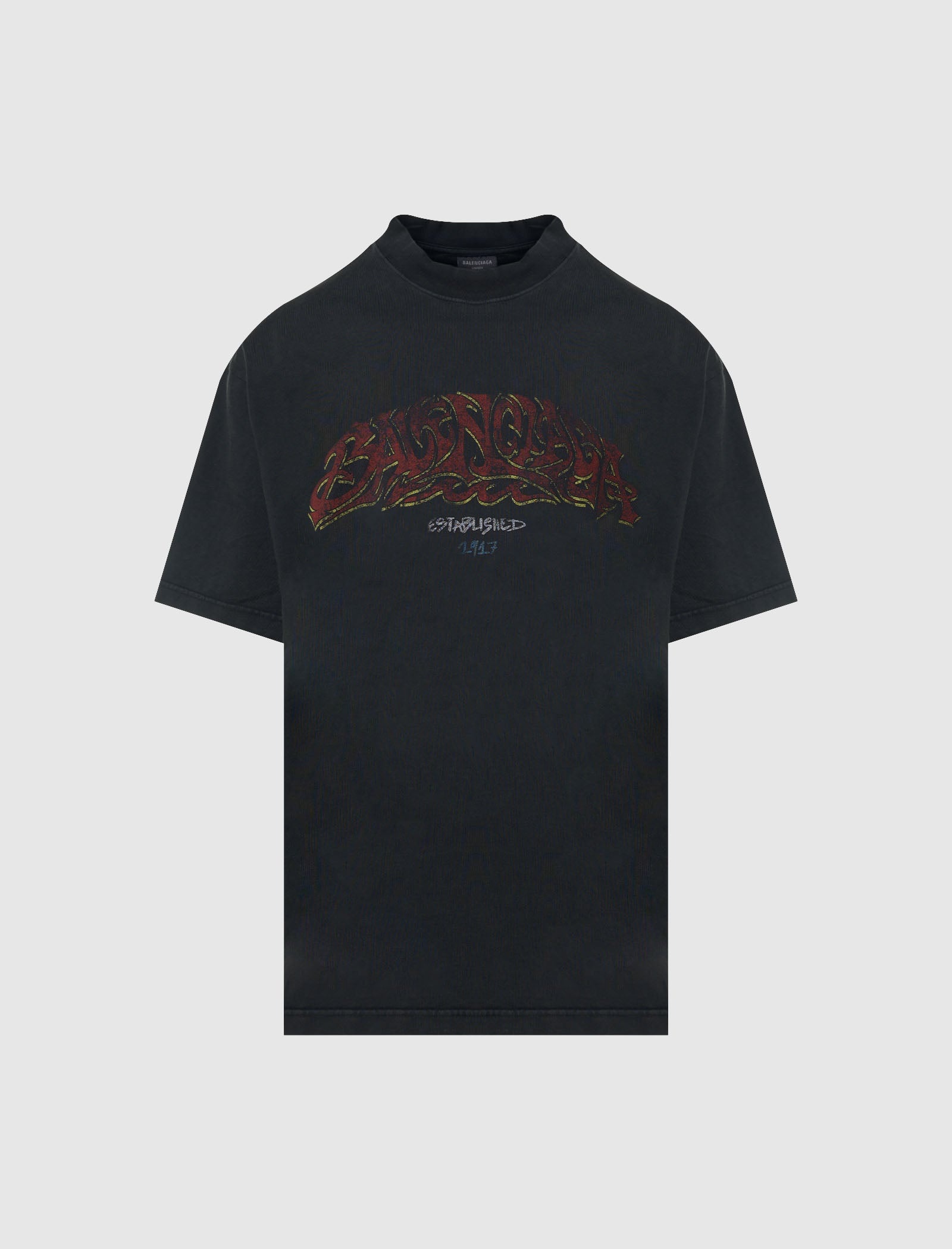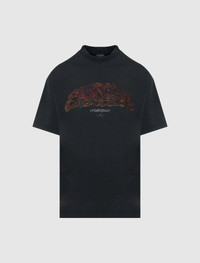 Oversized-fit short sleeve cotton t-shirt. Mockneck. Graphic logo text at chest and back. - 100% Cotton SKU: 764235-TPVM8-1568