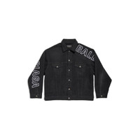Outline Large Fit Jacket in black soft left hand denim PRODUCT DETAILS • Soft black left hand denim • This item is unisex • Large fit • 6 button front • 2 buttoned pockets at chest • 2 slash pockets • Buttoned cuffs • Adjustable buttoning at waist • Balenciaga engraved flex buttons • Outline logo embroidered at front left and back right • Made in Italy • Dry cleaning • The model is wearing a size S Material: 100% cotton