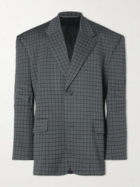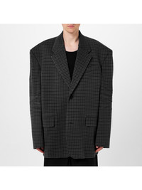 Balenciaga's AW23 collection showcased Demna's tailoring skills – the runway was filled with oversized suiting and deconstructed shapes. This knitted houndstooth blazer has a single-breasted front with wide, notch lapels, which balance out its boxy proportions. Size & Fit - Size 1 = 5’7”(170cm), 2 = 5’9”(175cm), 3 = 5’11”(180cm), 4 = 6’1”(185cm) and 5 = 6’2”(190cm) - Fits true to size. Take your normal size - Oversized fit, designed to be worn loose - Mid-weight, non-stretchy fabric - Model is shown wearing a 2 - Model measures: chest 38"/ 96cm, height 6'2"/ 188cm Details & Care - Tonal-grey polyester and cotton and polyamide-blend - Notch lapels, buttoned cuffs, chest welt pocket, two front flap pockets, internal pockets, fully lined - Two button fastening - 49% polyester, 45% cotton, 6% polyamide - Dry clean