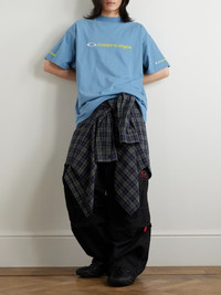 Oversized Logo-Embroidered Cotton-Jersey T-Shirt Blue