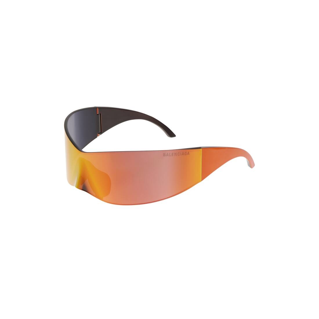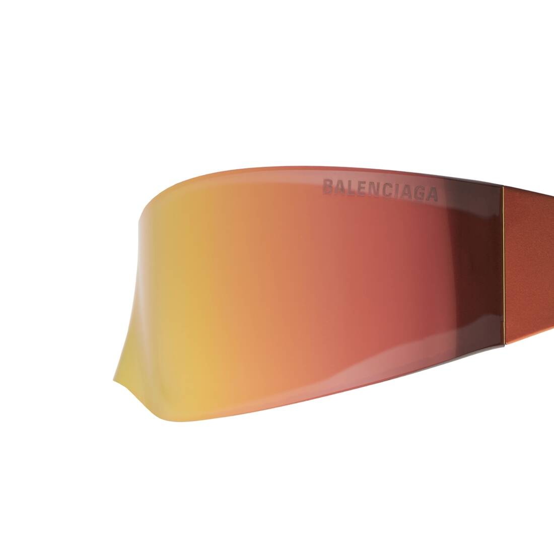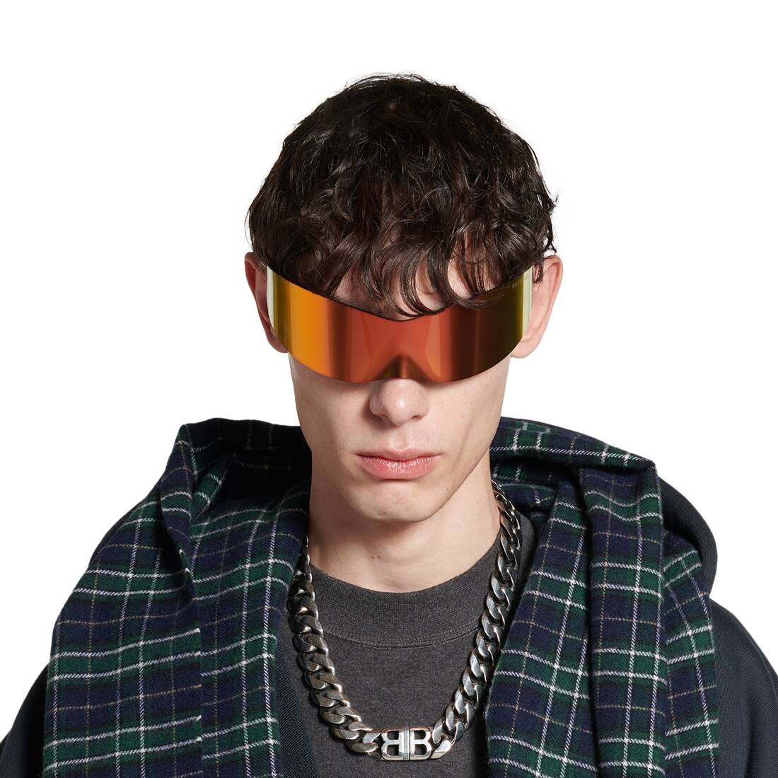 Panther Mask Sunglasses in matte mirror red injected nylon are from looks 10 and 30 of Balenciaga Fall 24 Collection. PRODUCT DETAILS • Temple length: 3,9 inch • Bridge length: 0,04 inch • Mask design • Standard fit • Integrated rubber nose pads • Balenciaga logo lasered on the left side • Lens material: Nylon • Lens category: 3 • Features Matte lenses: a particular mirroring effect realized thanks to the application of multiple layers that enables the processing or capturing of light, leading to an opaque and hazy effect • By layering treatments, it creates durability, uniqueness, and easy maintenance • 100% UVA/UVB protection • Not suitable for optical conversion • Made in Italy • BB0299S Material: polyamide