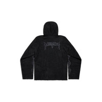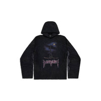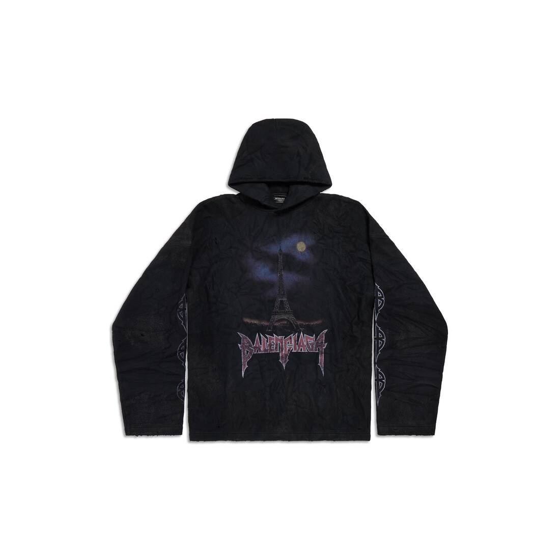 Paris Moon Crinkled Hoodie Large Fit in black fleece PRODUCT DETAILS • Fleece • This item is unisex • Large fit • Hood without drawstring • Dropped shoulders • Paris moon artwork printed at front, back and sleeves • Crinkled effect • Made in Portugal • Dry cleaning • The model is wearing a size S Material: 100% polyester