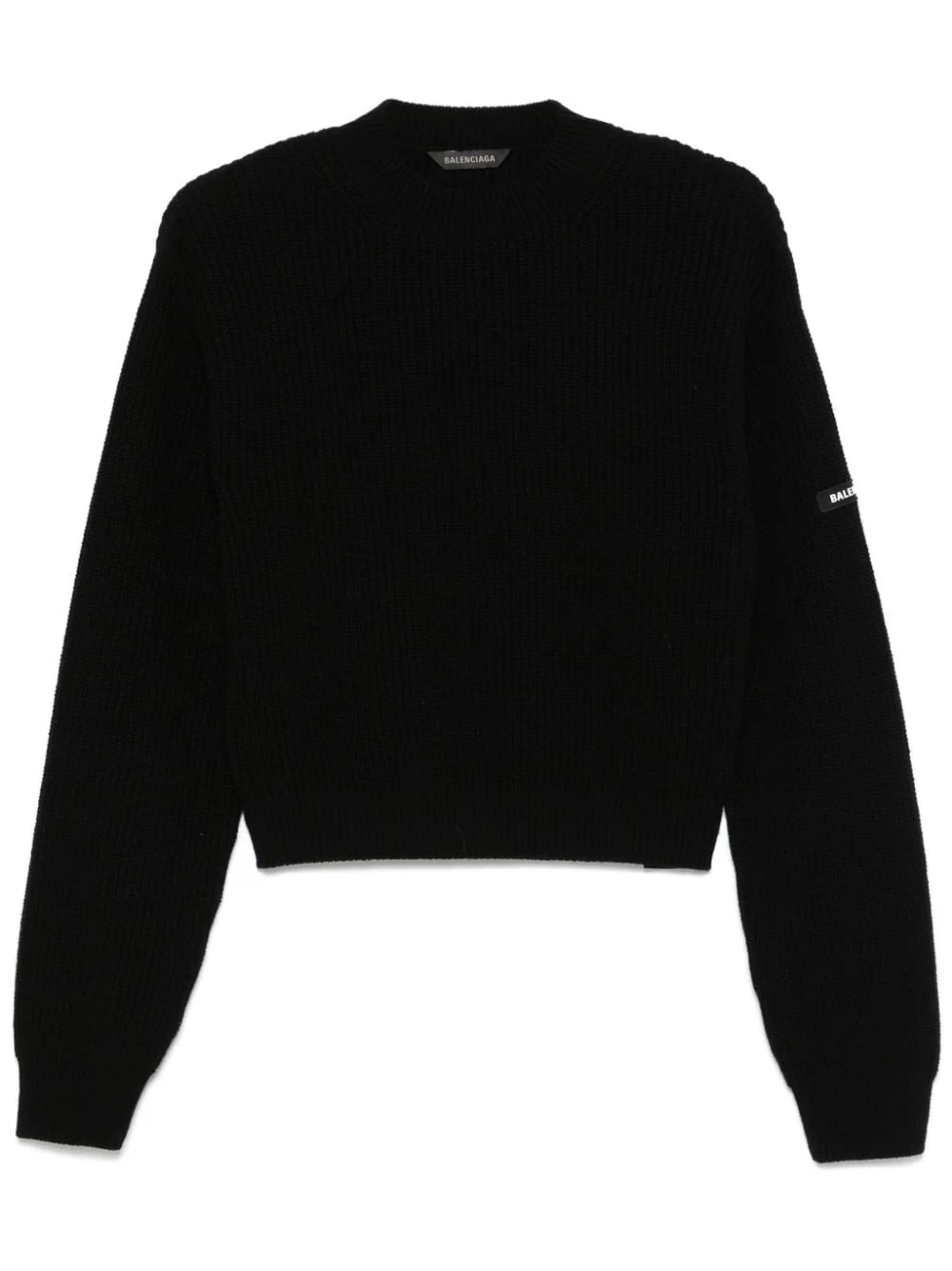 patch cropped sweater Highlights - Black - Wool - Ribbed knit - Rubberised logo detail - Cropped - Mock neck - Drop shoulder - Long sleeves - Straight hem - When buying this unisex item, keep in mind that it is graded in standard men's sizing. Made in Italy Composition Wool 100% SIZE & FIT Model measurements Height 6 ft 2 in(1.87 m) Bust/Chest 37.79 in(96 cm) Hips 37.79 in(96 cm) Waist 30.31 in(77 cm) FittingInformation This unisex piece is designed for a relaxed fit whether you usually select women's or men's sizes The ribbed hem offers a close, comfortable fit Made with a midweight knit, this piece offers some stretch
