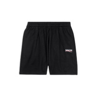 Political Campaign Sweat Shorts in black and white curly fleece PRODUCT DETAILS • Curly fleece • Unifit • Large fit • Mid-waist • Elasticated waistband • 2 slash pockets • Knee length • Political Campaign artwork embroidered at front • Made in Portugal • Cold machine wash • Model is 185 cm / 6'06" and is wearing a size S Material: 100% cotton