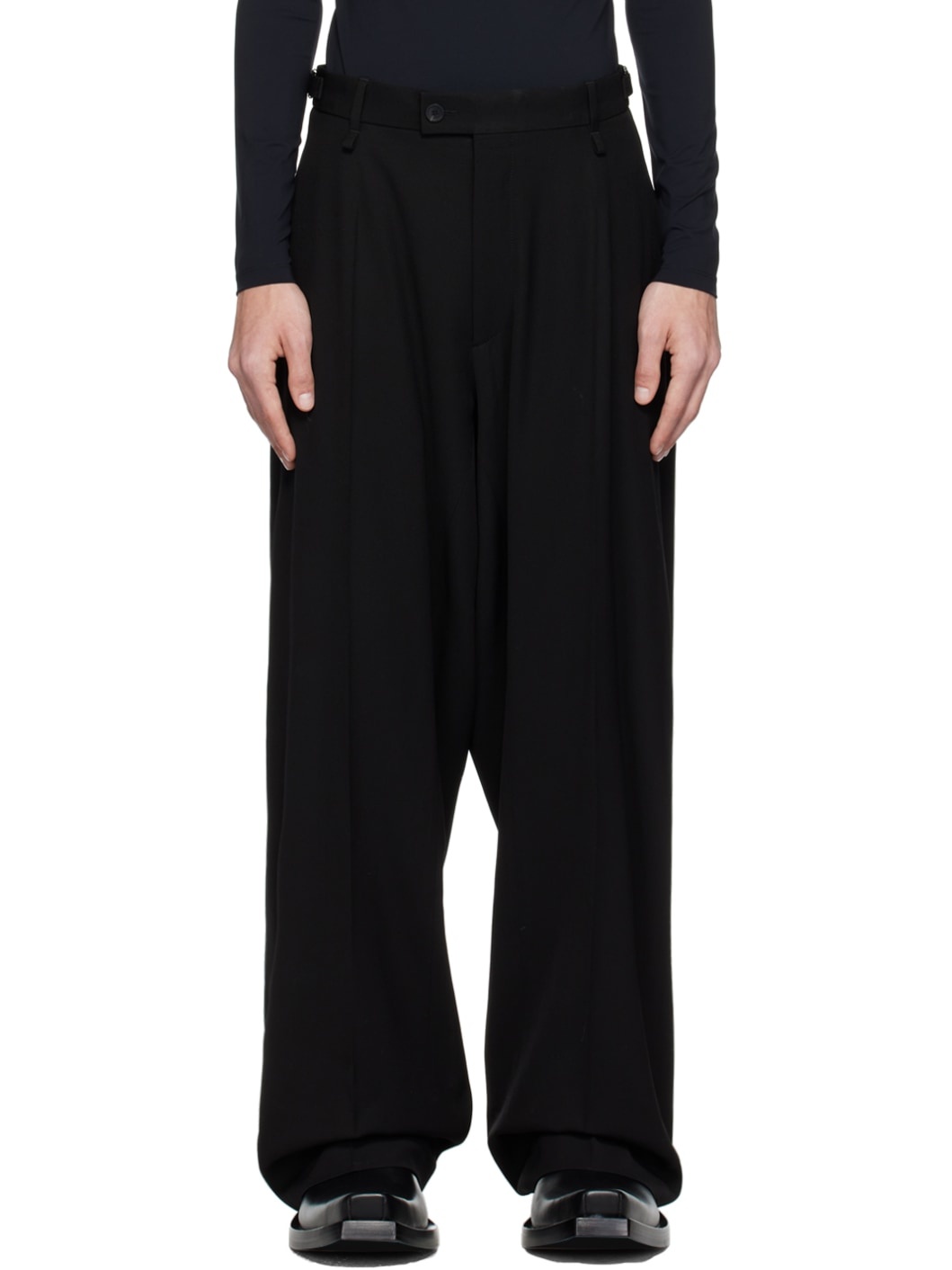 Relaxed-fit wool- and viscose-blend twill trousers. · Belt loops · Cinch tabs at waistband · Three-pocket styling · Creased legs · Partial cupro satin lining Supplier color: Black