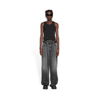 Pull-Up Pants in black and white Japanese denim is from the look 18 of the Balenciaga’s Fall 22, The Lost Tape Collection. PRODUCT DETAILS • Japanese denim • Unifit • Extra large fit • Mid-waist • Covered zip fly • 5 pockets • 5 large belt loops • Balenciaga engraved flex button • Balenciaga inlaid patch at back • Made in Italy • Dry cleaning • Model is 187 cm / 6'1" and is wearing a size S Material: 100% cotton
