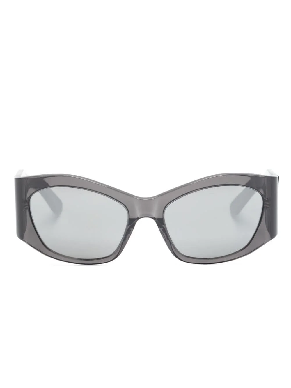 rectangle-frame sunglasses Highlights - Black - Acetate - Rectangle frame - Transparent frame - Mirrored lenses - Logo print at the arm - Oversize arms with curved tips - These glasses come with a protective case. Made in Italy Composition Acetate 100% SIZE & FIT Measurement Arm Length 5.31 in(13.5 cm) Bridge Width 0.7 in(1.8 cm) Lens Diameter 2.2 in(5.6 cm) Total Width 5.51 in(14 cm)