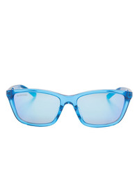 rectangle-frame sunglasses Highlights - Royal blue - Straight arms - Curved tips - Mirrored lenses - These glasses come with a protective case. Made in Italy Composition Acetate 100% SIZE & FIT Measurement Arm Length 5.31 in(13.5 cm) Bridge Width 0.66 in(1.7 cm) Lens Diameter 2.28 in(5.8 cm) Total Width 5.7 in(14.5 cm)