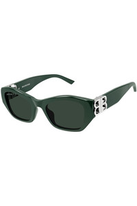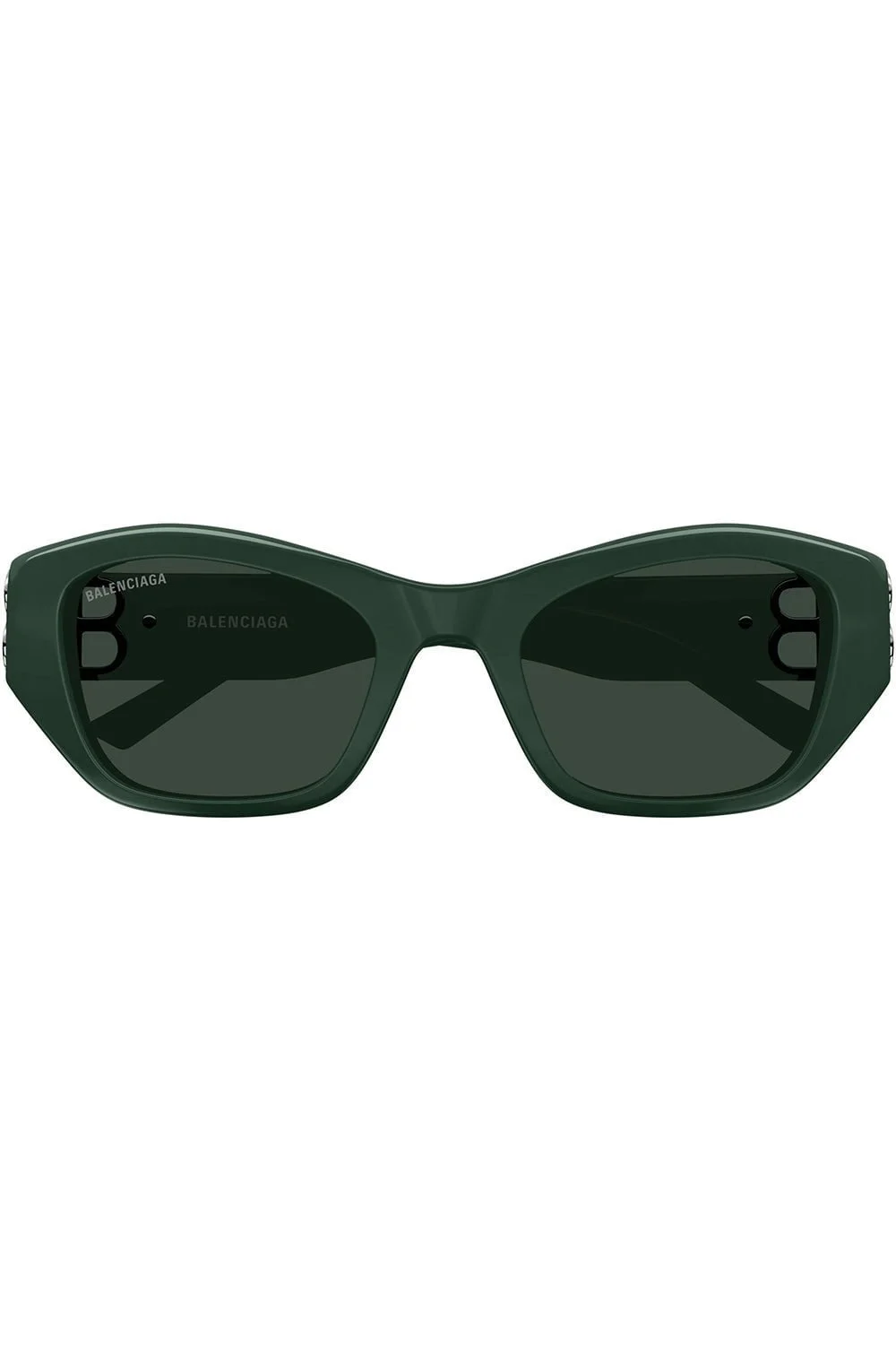 DETAILS AND INSIGHT Balenciaga rectangle logo sunglasses in green. 100% Acetate 53 - 21.0 - 140.0mm Style BB0311SK-004