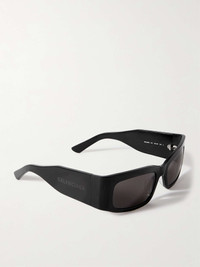 Balenciaga Eyewear's sunglasses are defined by their wide arms and sleek, rectangular frames. They're made from thick black acetate and feature its moniker debossed along the arms. Size & Fit - Frame Width: 16cm / 6.3in - Frame Height: 4cm / 1.6in Details & Care - Black acetate - Come with a case - 100% UV protection