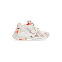 Runner Sneaker in neon orange and off-white mesh and nylon PRODUCT DETAILS • Leather free • Sneaker • Mesh and nylon • Worn-out effect • Printed size at the edge of the toe • Embossed size at back • Runner logo printed on exterior • Balenciaga logo embroidered on the tongue • Balenciaga logo at the back of the heel • Back pull-on tab • Made in China • Wipe with a soft cloth Material: 65% polyurethane, 35% polyester