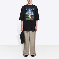 Balenciaga SS21 Retro Plain Weave Large Short Sleeve Unisex Black T-Shirt 641614TJVH61000