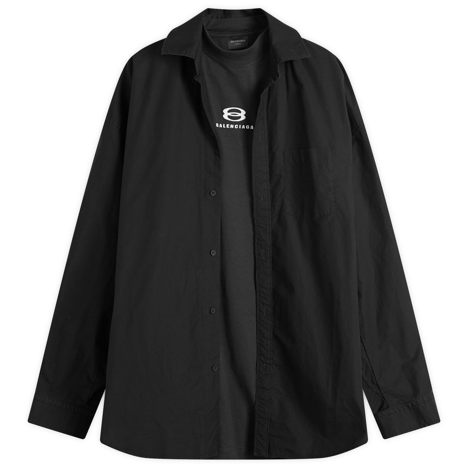 Balenciaga’s history is steeped in innovation, from Cristobal’s sleek lines that broke away from Dior’s ‘New Look’ to today’s grungy streetwear creations. This Layered Long Sleeve Shirt is a pre-styled piece with a built-in T-Shirt, offering effortless access to the brand’s coveted style. As always, its cut oversized and features distressed details, giving it the look of a piece you’ve lived in and loved for many years before. - 100% Cotton - Distressed Details - In-Built T-Shirt - Button Closure - Rounded Hem - Printed Branding - Made in Italy