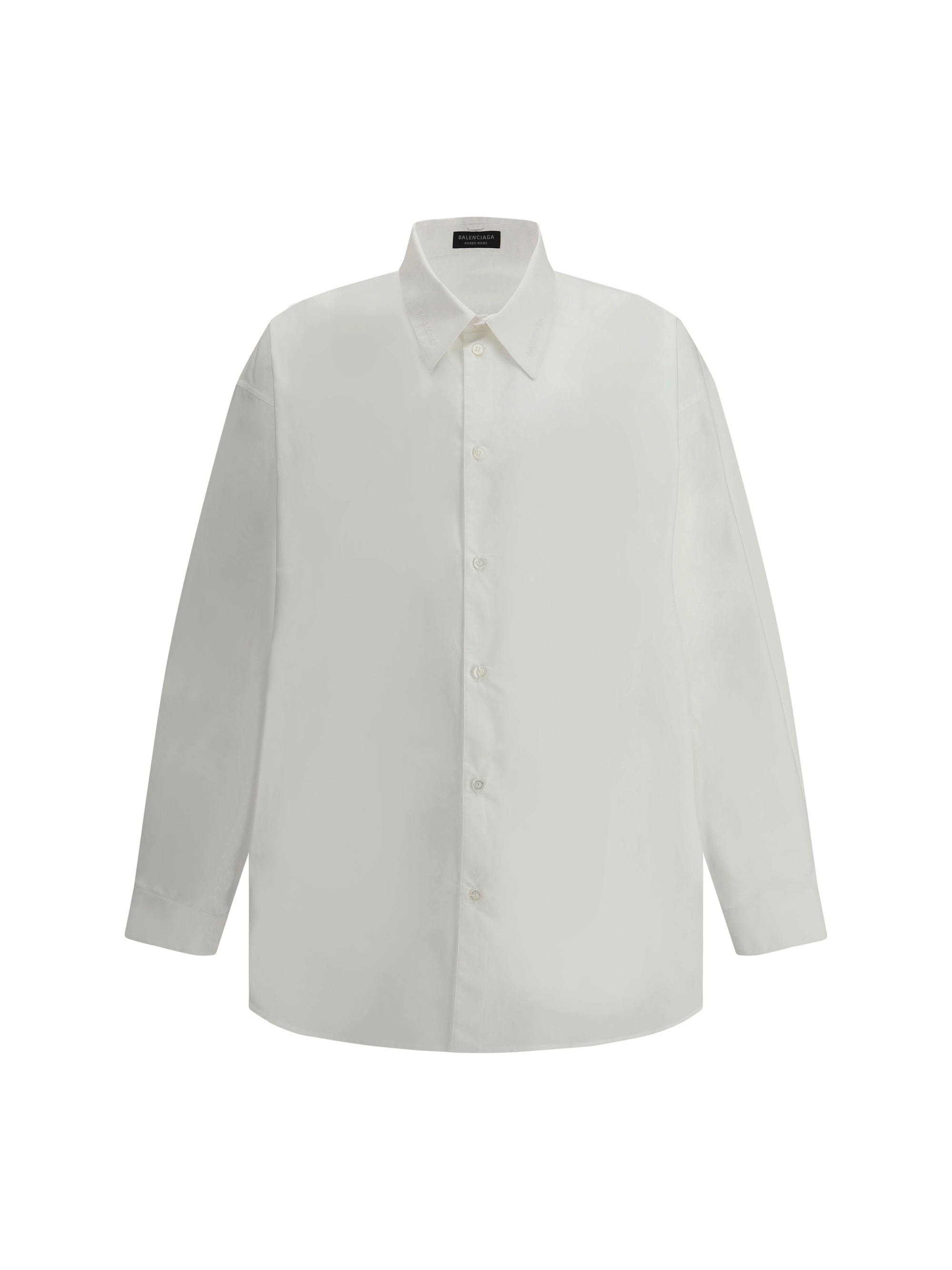 Balenciaga's Minimal Cotton Shirt features a classic collar with an elegant tone-on-tone embroidered monogram. The front closure features buttons, while adjustable button cuffs add a touch of practicality and style. With a monochrome pattern and an oversized fit, this shirt combines understated elegance with a modern design, perfect for a sophisticated, contemporary look. DETAILS sku 814008TNM60_9000 composition: COTTON 100% color group: WHITE gender: MAN season: SS25 size chart: SHIRT CM category name: SHIRTS
