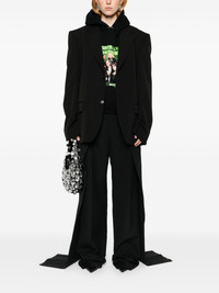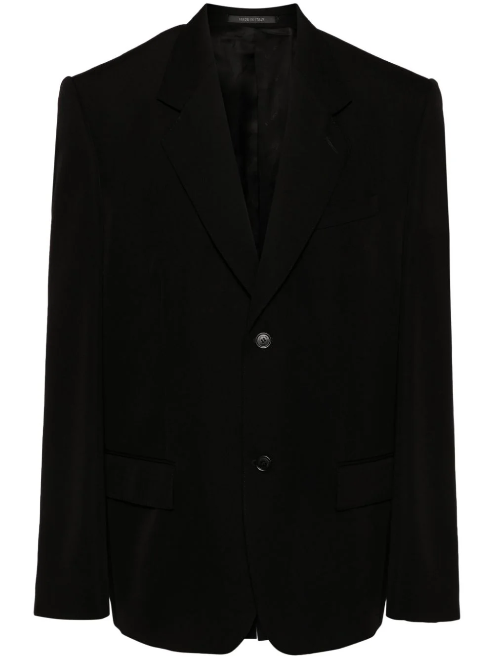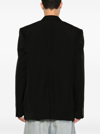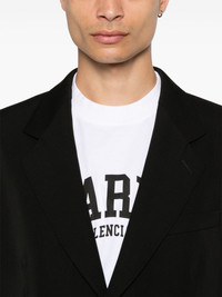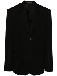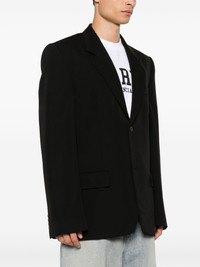 twill blazer Balenciaga's selection for AW23 favours timeless pieces. A true example of that approach, this wool blazer is cut to a classic single-breasted silhouette and finished with notched lapels. Highlights - Black - Wool - Twill weave - Notched lapels - Shoulder pads - Long sleeves - Buttoned cuffs - Chest welt pocket - Dart detailing - Two side flap pockets - Logo-print lining - Multiple internal slip pockets - Straight hem - Front button fastening - When buying this unisex item, keep in mind that it is graded in standard men's sizing. Made in Italy Composition Lining: Cotton 100%, Cupro 100% Outer: Wool 100% SIZE & FIT Model measurements Height 5 ft 10 in(1.77 m) Bust/Chest 33.85 in(86 cm) Hips 37 in(94 cm) Waist 26.37 in(67 cm) FittingInformation The internal shoulder pads offer a structured shape Made from a midweight non-stretch fabric Washing instructions Dry Clean Only