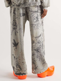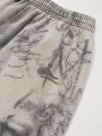 Wide-Leg Logo-Embroidered Distressed Printed Cotton-Jersey Sweatpants