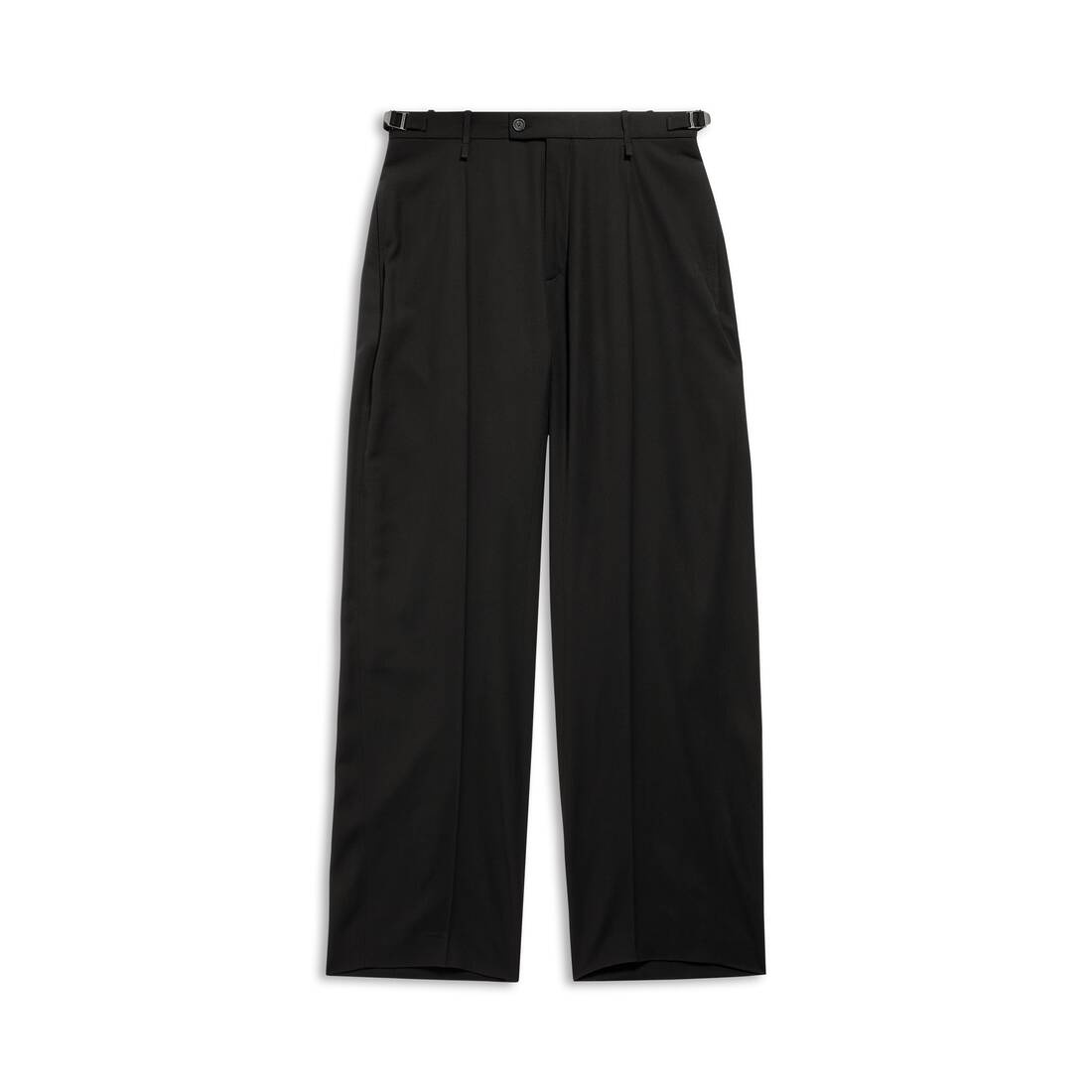 Skater Tailored Pants in black regenerative wool PRODUCT DETAILS • Regenerative wool • This item is unisex • Large fit • Mid-waist • 5 belt loops • 2 belt tabs on sides to adjust waistline • 2 slash pockets at front • 1 welt pocket at back • Made in Italy • Dry cleaning • The model is wearing a size S Material: 73% virgin wool, 27% viscose