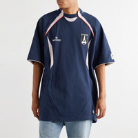 Soccer T-shirt in dark blue, red and white sporty mesh jersey PRODUCT DETAILS Composition: 100% Polyester - Sporty jersey - Regular fit - Crewneck - Sponsor artwork printed on front - Soccer artwork printed at chest - White yokes on shoulders and sleeves - Made in Portugal - Dry cleaning - Model is 187 cm / 6'2" and is wearing a FR size S