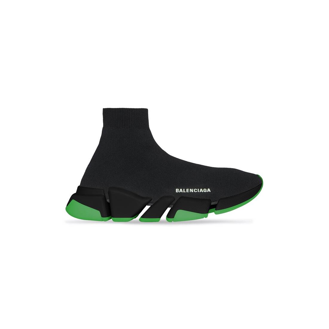 Speed 2.0 Clear Sole Sneaker in black recycled knit, neon green and black sole unit PRODUCT DETAILS • Technical 3D knit • Ultra-articulated molded sole unit • "No Memory” sole technology • Extra light: nearly barefoot feel • Contrasted logo printed on exterior • Embossed logo on the back of sole • Made in Italy • Do not machine wash and wipe with a soft cloth Material: 92% polyester, 8% elastane