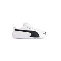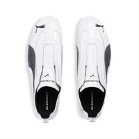 Speedcat Leather Balenciaga in white and black cowskin PRODUCT DETAILS • Cowskin • Slip-on sneaker • Flat and smooth upper construction • Balenciaga logo and PUMA cat debossed on the tongue and external side • Embroidered PUMA cat on the front • In collaboration with PUMA • Written size on the back of the heel • Back pull-on tab with reflective detail • Made in China Upper: cowskin- Sole: rubber - Insole: polyester