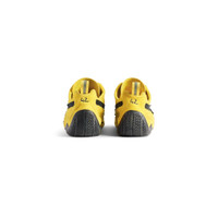 Speedcat Suede Balenciaga in yellow and black distressed suede cowskin PRODUCT DETAILS • Distressed suede cowskin • Sneaker • Flat and smooth upper construction • Balenciaga logo and PUMA cat debossed and printed on the tongue and external side • Embroidered PUMA cat on the front • Written size on the back of the heel • In collaboration with PUMA • Back pull-on tab with reflective detail • Made in China Upper: cowskin - Sole: rubber - Insole: polyester