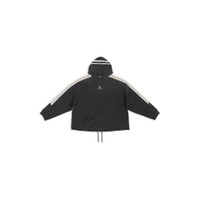 Sporty B Hoodie Large Fit in black, grey and white medium fleece PRODUCT DETAILS • Medium fleece • Unifit • Hood without drawstring • 1 kangaroo pocket on front • Drawstring on the bottom • Contrasting yokes on hood, shoulders and sleeves • Sporty B logo embroidered at front • Made in Portugal • Cold machine wash • Model is 190 cm / 6'2'' and is wearing a size S Material: 100% cotton