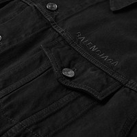 Balenciaga Embroidered Logo Front and Back Denim Jacket