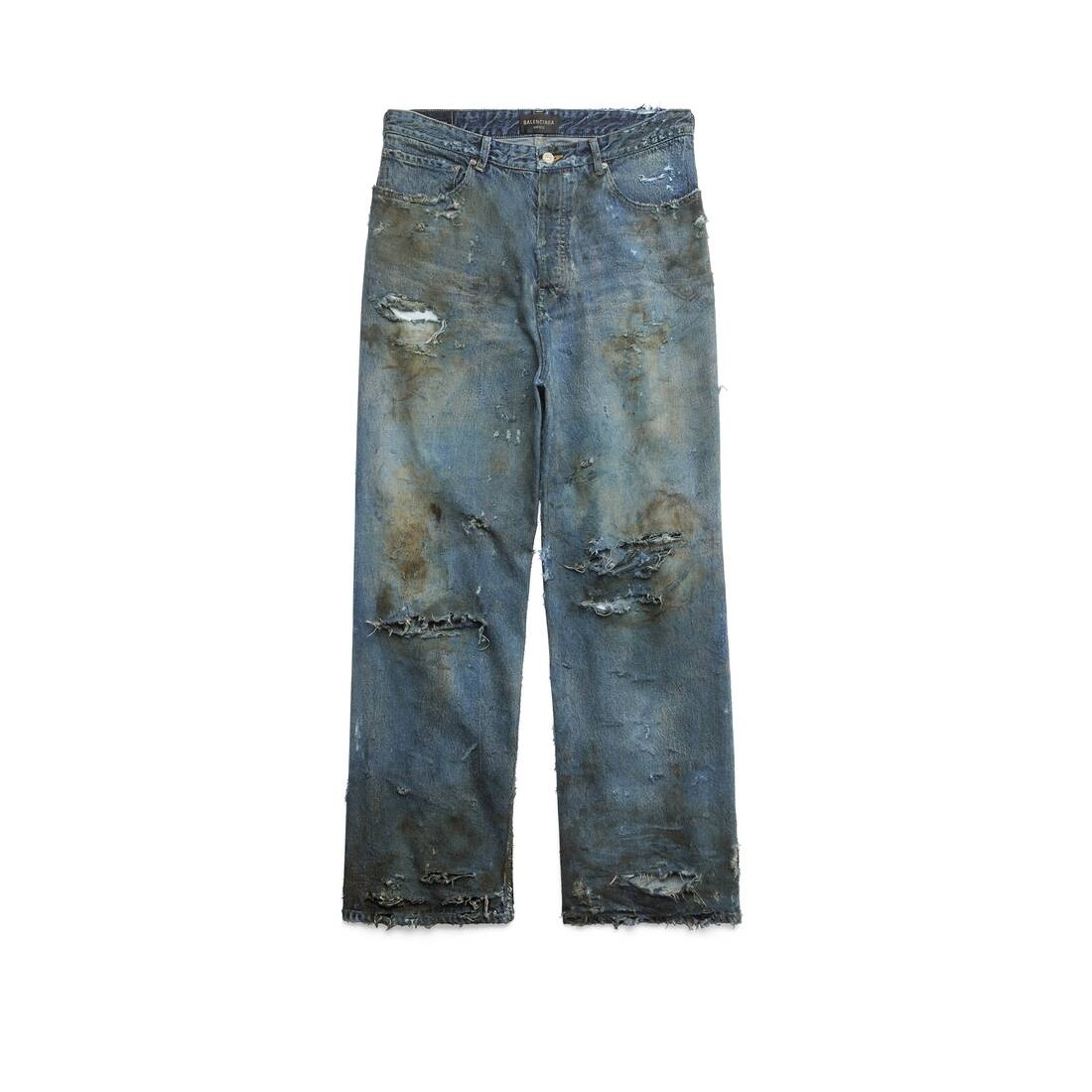 Super Destroyed Baggy Pants in light blue Japanese denim are from the look 15 of the Balenciaga's Summer 23 Collection. PRODUCT DETAILS • Blue Japanese denim • This item is unisex • Large fit • Mid-waist • Covered button fly • 5 belt loops • 5 pockets • Large rips at back • Balenciaga inlaid patch at back • Heavily destroyed and dirty effect • Made in Japan • Dry cleaning • Model is 191 cm / 6'3" and is wearing a size S Material: 100% cotton