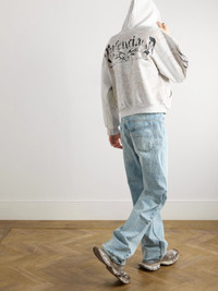 Balenciaga's 'Tacky' hoodie calls to mind classic Y2K styles. Printed with an elaborate, metallic logo and embellished with scores of crystals, it's cut from faded loopback cotton-jersey and subtly distressed along the edges for an authentic vintage feel. Size & Fit - Those who are above 6'1"/ 185cm may wish to take the next size up - Mid-weight, slightly stretchy fabric - Model is shown wearing a M Details & Care - Off-white, black and gold loopback cotton-jersey - Two-way zip fastening - 100% cotton - Machine wash