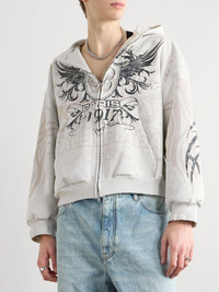 Tacky Embellished Metallic Logo-Print Cotton-Jersey Zip-Up Hoodie Off-white