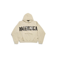 Tape Type Ripped Hoodie in beige dry fleece for Women and Men PRODUCT DETAILS • Dry fleece • Hood without drawstring • Dropped shoulders • Ripped out pocket at front • Tape Type logo at front and back • Worn-out details • Made in Portugal Main material: 100% cotton