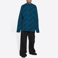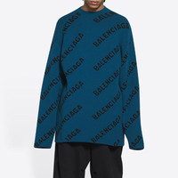 Balenciaga All Over Logo Crewneck Wool Knit Sweater 'Petrol Blue' 657400T15672470