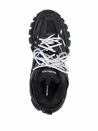 Track low-top sneakers Initially released as part of their AW18 collection, Balenciaga's Track sneakers demonstrate the brands penchant for chunky sneakers inspired by trainers from the 90s. This iteration, released as part of the AW21 collection showcase a leather, mesh and nylon construction in a monochrome palette, set atop a ridged rubber sole. Imported Composition Lining: Fabric 100% Sole: Rubber 100% Outer: Fabric 100%, Leather 100% SIZE & FIT Measurement HEEL 1.96 in(5 cm) Sole height 1.18 in(3 cm)