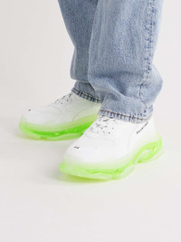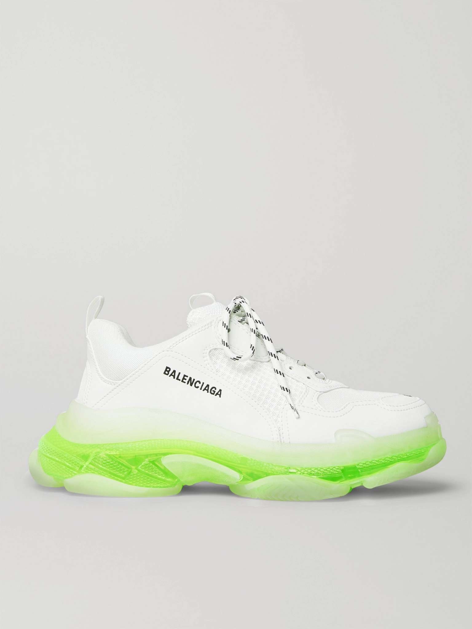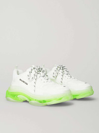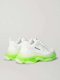 Balenciaga keeps reinventing its in-demand 'Triple S' sneakers in a number of fresh colourways. This pair is made from panels of white mesh and leather, and set on stacked neon-yellow soles. They're branded with the label's logo at the sides and fasten with hiking-inspired laces. Size & Fit - Fits true to size. Take your normal size - Only available in full sizes, go up to the nearest whole size if you take a half size - European sizing Details & Care - White mesh and leather - Pull tabs, designer emblems, mesh linings, rubber soles - Lace-up - Style number: 541624-W2FR1