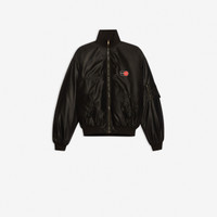 Uniform Bomber in black shiny nylon PRODUCT DETAILS Composition: 100% Polyamide - Shiny nylon - Quilted black lining - Dropped shoulder - Ribbed high-neck - Zipped at front - Ruffles on sleeves - 2 flap pockets with snaps - 1 piped pocket at chest - 1 zipped pocket on the left sleeve - Ribbed finishing at waistline and cuffs - Uniform logo embroidered at chest - Made in Slovakia - Dry cleaning - Model is 186 cm / 6'1.23" and is wearing a FR size 46