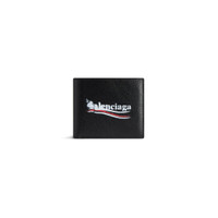 Cash Square Folded Wallet in black grained calfskin PRODUCT DETAILS • Dimensions: L4,3 x H3,7 x W1,1 inch • Grained calfskin • Square folded wallet • Political stencil logo printed at front • 8 card slots • 2 bill pockets • 2 receipt compartments • Made in Italy Material: calfskin