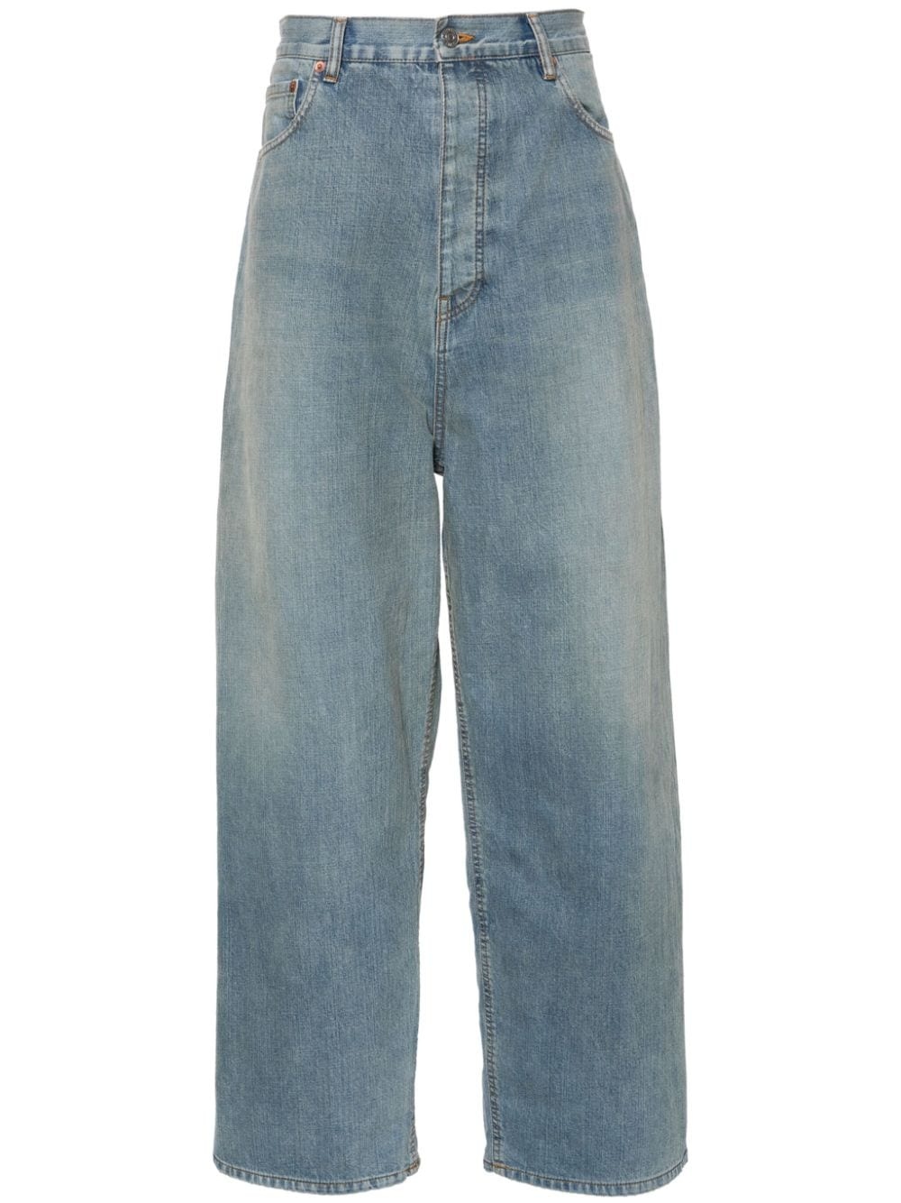 mid-rise wide-leg jeans Highlights - Blue - Cotton - Denim - Waterproof - Whiskering effect at the thighs - Logo patch to the rear - Mid-rise - Belt loops - Button fly fastening - Classic five pockets - Wide leg - Fleece lining - We've partnered with good on you â an independent agency that rates how brands perform in relation to their impact on the planet, people and animals, with a multi-criteria rating simplified to a five points scale. in order to be awarded our conscious label, larger brands need to score a minimum of four out of five ('good'), while smaller brands must score at least three out of five ('it's a start'). - This item comes from a brand rated four out of five ('good') by good on you at the time it was added on farfetch. please note, this is a brand-level rating and does not guarantee that this product is made with conscious materials. - Learn more about what makes a product conscious on our conscious criteria page Imported Composition Lining: Polyester 100% Outer: Cotton 100% SIZE & FIT Model measurements Height 6 ft 1 in(1.86 m) Bust/Chest 33.85 in(86 cm) Hips 37.79 in(96 cm) Waist 31.49 in(80 cm) FittingInformation Designed with a wide leg, these jeans offer a loose and roomy fit Sturdy and hard-wearing, this denim piece offers no stretch This piece fits true to size – take your usual size