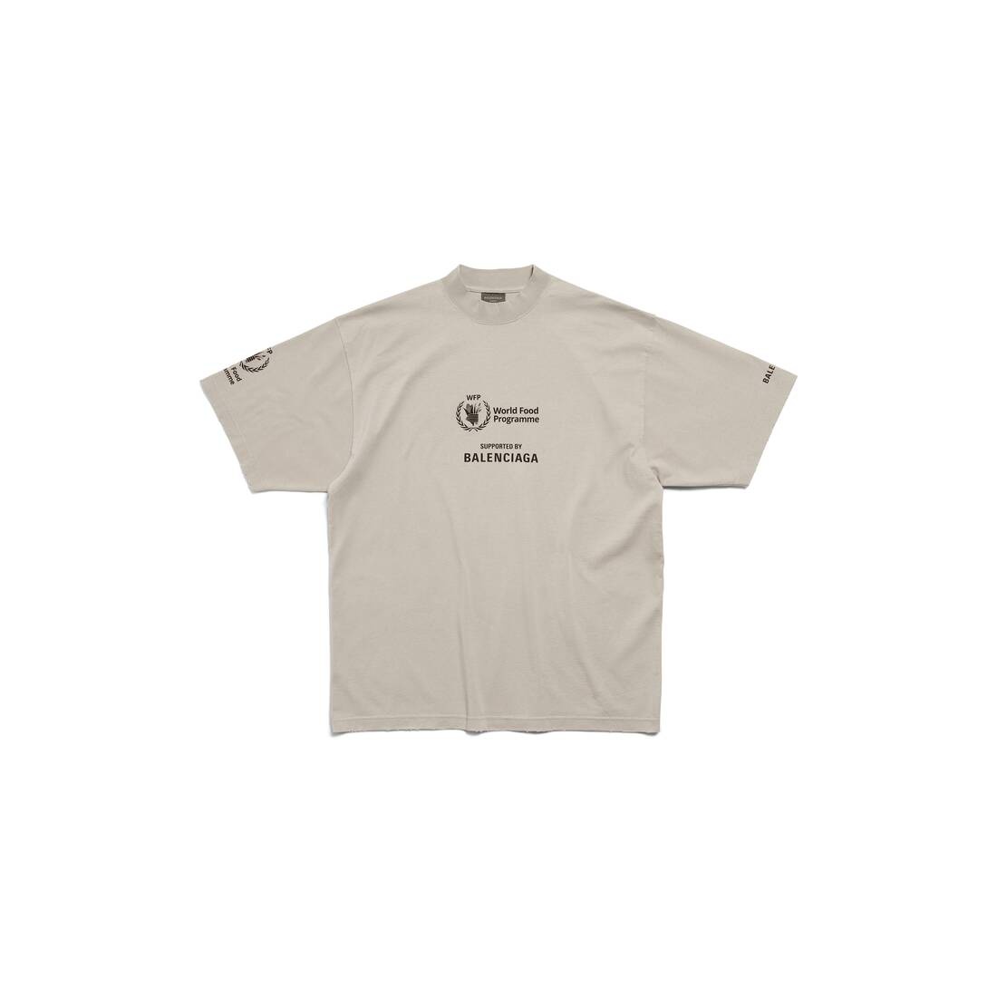 WFP T-Shirt Medium Fit in grey and black vintage jersey PRODUCT DETAILS • Vintage jersey • This item is unisex • Medium fit • Crewneck • Short sleeves • World Food Programme printed at front, back and on the right sleeve • Balenciaga logo printed at front and on the left sleeve • Made in Portugal • Cold machine wash Material: 100% cotton