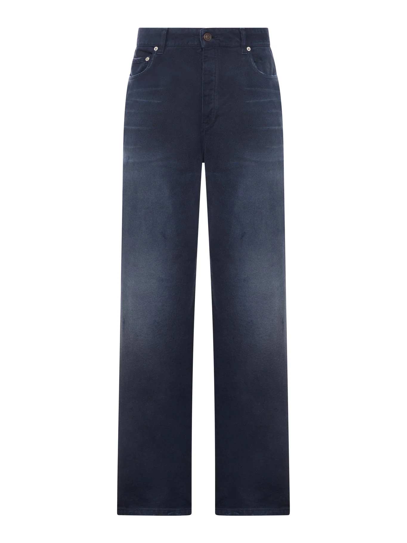 - Belt loops at the waist - Zip and button closure - 5-pocket design - Faded effect - Logo patch on the back - 100% cotton - Color: Navy/Dirty Blue Made in Italy Composition: Cotton 100% cotton Color code: 8074 NAVY DIRTY DARK BLUE 857194TTW64